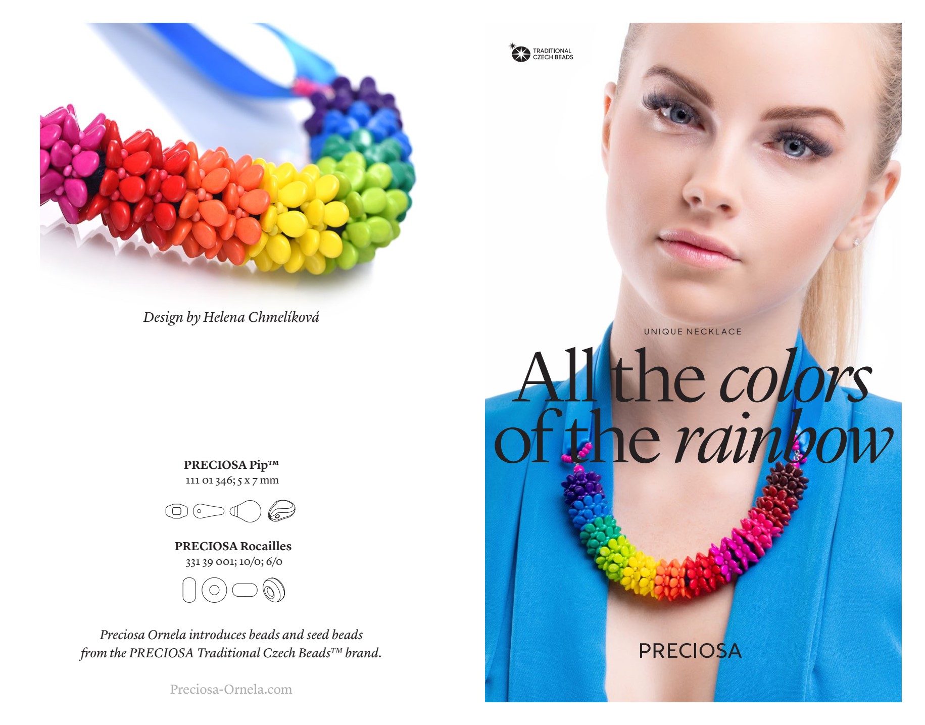 - Made using Preciosa pip beads