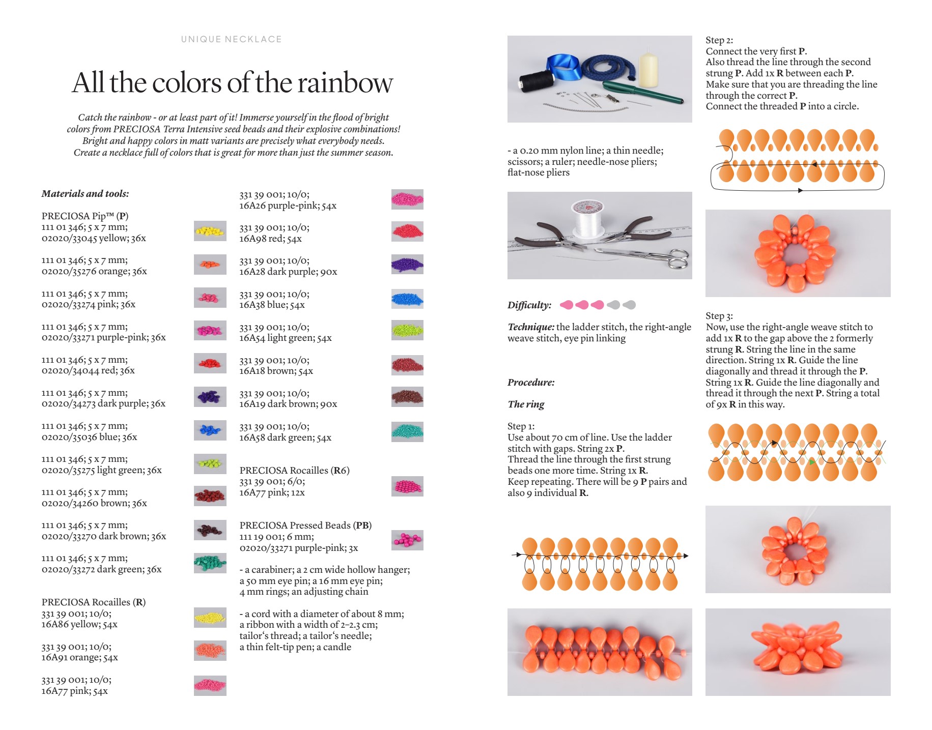 Download and print this rainbow necklace Friday freebie as many times as you like for free! A4 printable beading pattern project sheets showing you how to make a necklace using Preciosa pip beads.