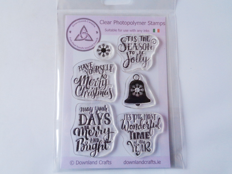 Set contains a snowflake stamp, bell stamp and 4 festive sentiment stamps including ‘Have Yourself a Merry Christmas’, ‘Tis The Season To Be Jolly’, ‘May Your Days Be Merry And Bright’ and ‘It’s The Most Wonderful Time of the Year’.